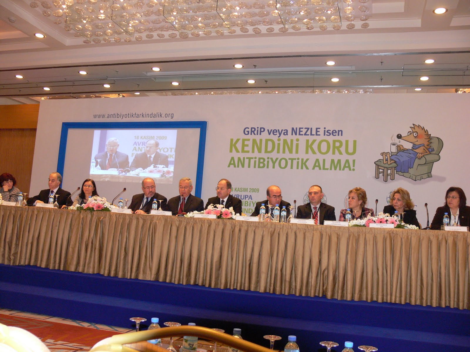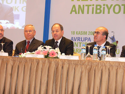 ”Avrupa Antibiyotik Farkındalık Günü” nedeniyle düzenlenen toplantıda konuşan Sağlık Bakanı Prof. Dr. Recep Akdağ, antibiyotiklerin keşfinden önce insanların basit hastalıklardan hayatını kaybettiğini, bugün ise zatürre gibi birçok hastalığın tedavisinin antibiyotik ile mümkün olduğuna dikkat çekti. Ancak bakterilerin mutasyona uğrayarak, bu ilaçlara karşı direnç geliştirerek varlıklarını sürdürdüklerini anlatan Bakan Akdağ, bu nedenle dirençli mikroorganizmaların tedavisinde güçlük çekildiğini kaydetti. Bakan Akdağ, şunları söyledi: “Antibiyotikler bizim için çok önemli, çok değerli, ama onları biraz kıskanarak, yerli yerinde kullanmalıyız. Aslında içinde bulunduğumuz, bir grip salgının yaşandığı günler bu açıdan da önemi artıyor. Hem vatandaşlarımız, ateşli durumlar için doktorlarını ‘antibiyotik verin’ diye zorlamamalılar hem de kendi başlarına antibiyotik asla kullanmamalılar. Doktorlar da bilgilerini tazeleyerek farkındalıklarını artırarak antibiyotiği nerede kullanacakları ile ilgili en doğru kararı vermeliler. İçinde bulunduğumuz günlerdeki bu grip virüsü antibiyotiklerle tedavi edilemez.”