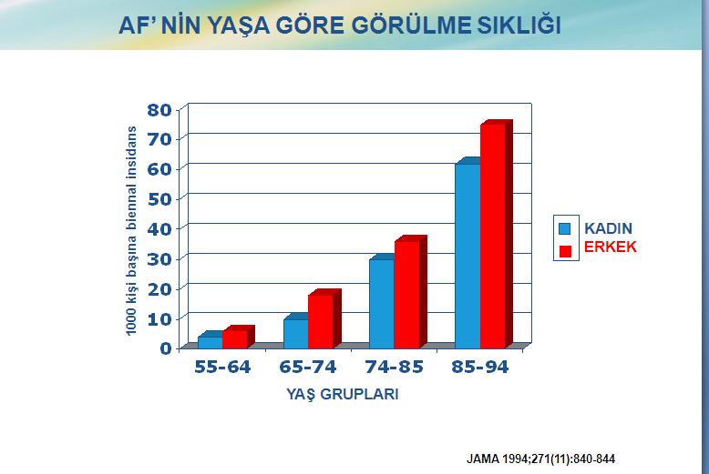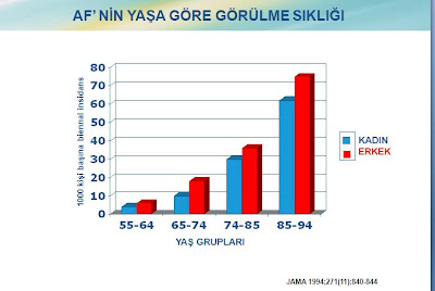 Atriyal fibrilasyonun her yaşta görüldüğünü dile getiren Doç. Dr. Diker şunları kaydetti: “60 yaş altında her bin kişide ortalama 2 – 3 kişide gözlenirken, 60 ve 70’li yaşlarda bu oran yüzde 2’ye, 80’li yaşlarda ise oran yüzde 10 – 20’lere çıkıyor. Kalp hastalıkları dışında akciğer hastalıkları ve bazı hormonal bozukluklar da atriyal fibrilasyona yol açabilir. Özellikle yaşlılarda her 10 kişiden birinde görülen ve ciddi felç riski taşıyan hastalığın . 60 yaşının üzerindeki her 25 kişiden 1’inde, 80 yaşının üzerindeki her 10 kişiden 1’inde görülür. Kadınlarda erkeklere oranla daha sık görülüyor. Atriyal fibrilasyon nedeniyle yatışlar, tüm kardivasküler nedenli hastane yatışlarının yüzde 10’nu oluşturur.”