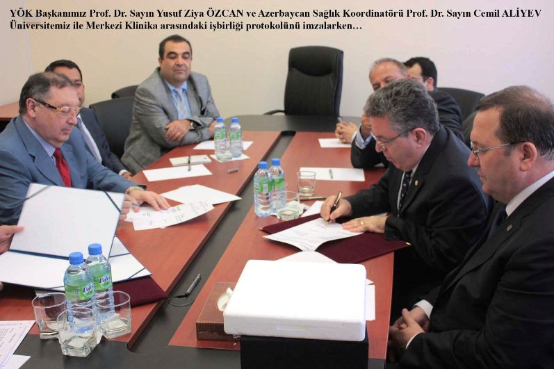 Afyon Kocatepe Üniversitesi ile Azerbaycan Cumhuriyeti Cumhurbaşkanlığı’na bağlı hizmet veren Merkezi Klinik arasında “Eğitim, Öğretim, Sağlık ve Kültürel İşbirliği Protokolü” imzalandı. Azerbaycan’da gerçekleştirilen imza töreninde; YÖK Başkanı Prof. Dr. Yusuf Ziya Özcan, YÖK Yürütme Kurulu Üyesi Prof. Dr. Muhittin Şimşek, Azerbaycan Sağlık Koordinatörü Prof. Dr. Cemil Aliyev, Hematoloji Uzmanlık Derneği Başkanı Prof. Dr. Süleyman Dinçer, Afyon Kocatepe Üniversitesi Rektörü Prof. Dr. Mustafa Solak ile Azerbaycan Merkezi Klinika Baş Direktörü Melikşah N. Acuner hazır bulundu.Protokol, YÖK Başkanı Prof. Dr. Yusuf Ziya Özcan, Rektör Prof. Dr. Mustafa Solak ile Azerbaycan Sağlık Koordinatörü Prof. Dr. Cemil Aliyev ve Azerbaycan Merkezi Klinika Baş Direktörü Melikşah N. Acuner tarafından imzalanarak, yürürlüğe girdi.