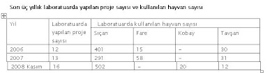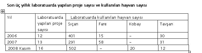 Son üç yıllık laboratuarda yapılan proje sayısı ve kullanılan hayvan sayısı