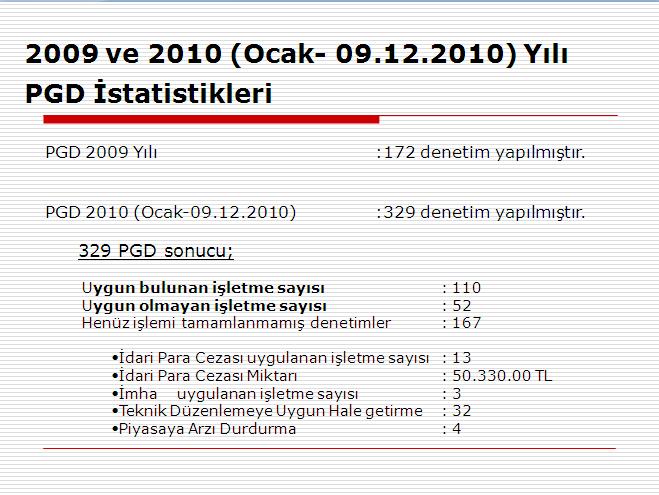 Bakanlık aracılığıyla olumsuz olaya neden olan cihazın bilgisinin, imalatçıya intikal ettirildiğini belirten Dr. Septioğlu, “2009 yılında 172, 2010 yılında 329 denetim yapıldı. Uygun bulunan işletme sayısı 110, uygun olmayan işletme sayısı 52, henüz işlemi tamamlanmamış denetimler 167 olarak tespit edildi. 2010 yılında 50 bin TL idari para cezası uygulandı. Uygulayıcılar, operatörler ve kullanıcılar, uyarı sistemi kapsamında oluşan olumsuz olayları, Bakanlığa bildirmekle yükümlüdür. Sağlık kurum ve kuruluşu bünyesinde görev yapan bir personel, olumsuz olay bildirimi ile ilgili sorumlu tayin edildi. Bir olumsuz olay olduğunda, olaya tanık olanlar, bir tutanak ile Bakanlığa bildiriyor. Tutanakta ilgili cihazın markası, modeli, imalatçı veya ithalatçı gibi bilgiler bulunuyor” diye konuştu.