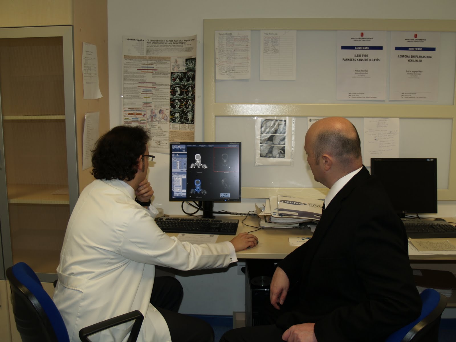 Tiroid kanseri dışında birkaç tümörde daha hedefe yönelik radyonüklid tedavi uygulanabildiğini belirten Prof. Dr. Uğur şu bilgileri verdi: “Bunlar arasında lenfoma ve karaciğer kanseri tedavileri yer alıyor. Karaciğer kanserinde tümörü besleyen damara, kasıktan kateter yardımıyla ulaşıp radyoaktif ilacı veriyoruz. Karaciğer tümörlerinde tedavi amacıyla saç telinden daha küçük boyutarda radyoaktif küçük küreler kullanıyoruz. Lenfomada radyoaktif ilacımızı koldaki damardan vererek tedavimizi gerçekleştiriyoruz. Lenfoma tümörüne karşı direk etki eden CD 20 antijenlerine karşı geliştirilen radyonüklid işaretli antikorlar ile tümörün yok edilmesi hedefleniyor. Radyoaktif işaretli antikorlar,lenfoma tümörüne yapışıyor ve radyasyon vererek yok ediyor.”