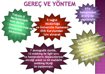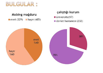 Karadeniz Teknik Üniversitesi Sağlık Yüksekokulu Öğretim üyesi Yrd. Doç. Dr. Havva Öztürk ve ekibi mobbingin hemşireler üstündeki olumsuz etkilerini araştırdı. İl Sağlık Müdürlüğü ve Üniversite Hastanesi Etik Kurulundan izin alınarak Trabzon il Merkezindeki tüm devlet hastanelerinde ve Üniversite Hastanesinde 974 hemşireden 814’ünden görüş alındı. 7 demografik özellik, 10 mobbing ile ilgili soru ve hemşirelerin düşüncelerinin alındığı anket ve 68 maddelik mobbing ölçeği ile toplandı. Mağdur olduğunu belirten 329 hemşirenin yüzde 42’si (139) gerçek mobbing mağduru. Tüm hastanelerde çalışan 814 hemşirenin de yüzde 17’si mobbing yaşıyor.
