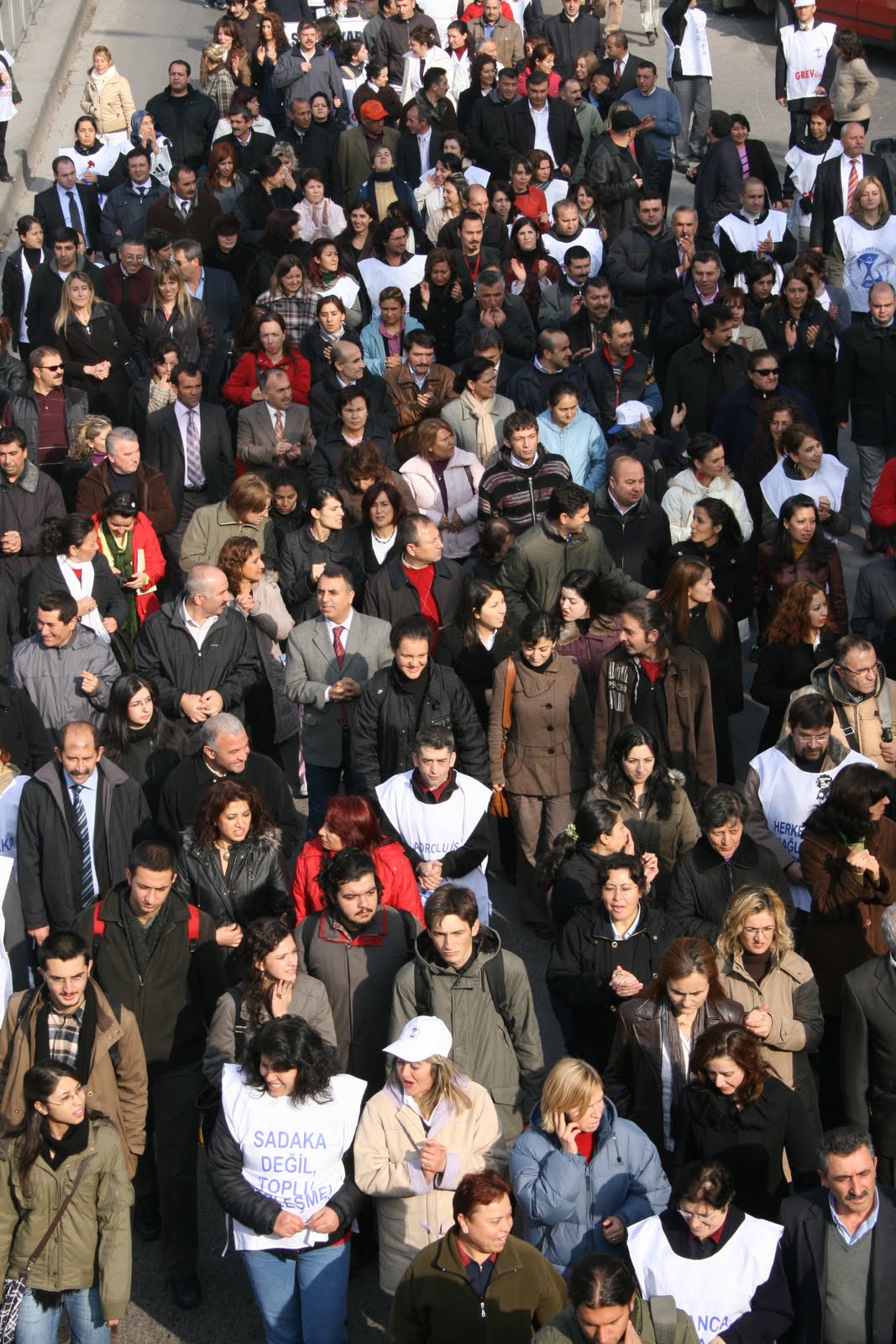 TTB, SES, Devrimci Sağlık-İş ve diğer sağlık örgütlerinin üyeleri daha sonra Hacettepe Üniversitesi’nden Sağlık Bakanlığına yürüdü. Gruptakiler, tasarı karşıtı pankartlar taşıyarak, slogan attılar. Abdi İpekçi Parkı’nda 30 gündür Ankara’da eylem yapan Tekel işçileriyle buluşan sağlıkçılar, daha sonra Sağlık Bakanlığı önünde basın açıklaması yaptı. TTB Merkez Konseyi Üyesi Ali Çerkezoğlu, burada yaptığı açıklamada sağlığın bir ekip hizmeti olduğunu belirterek, tasarının kendi görüşleri alınmadan yasalaştırılmak istendiğini söyledi. Sağlık hizmeti üretenlere kulak verilmesi gerektiğini ifade eden Çerkezoğlu, “Hastalar bizim rakibimiz değil. Halkın sağlık hakkını savunuyoruz ve savunmaya devam edeceğiz. Para tartışması yapmıyoruz, iş güvencesi istiyoruz” dedi. Çerkezoğlu, sağlıkta dönüşüm programının mağduru olmak istemediklerini, bu nedenle tasarının geri çekilmesini talep ettiklerini söyledi. SES Genel Başkanı Bedriye Yorgun da, sağlıkta dönüşüm programını ve sağlık kuruluşlarındaki taşeronlaşmayı eleştirdi. Sağlık Bakanlığının önündeki konuşmaların ardından sağlıkçılar, Tekel işçileriyle birlikte Türk-İş Genel Merkezi önüne yürüdü. Eylemciler burada, hükümet karşıtı sloganlar attılar.