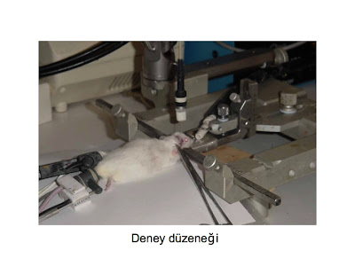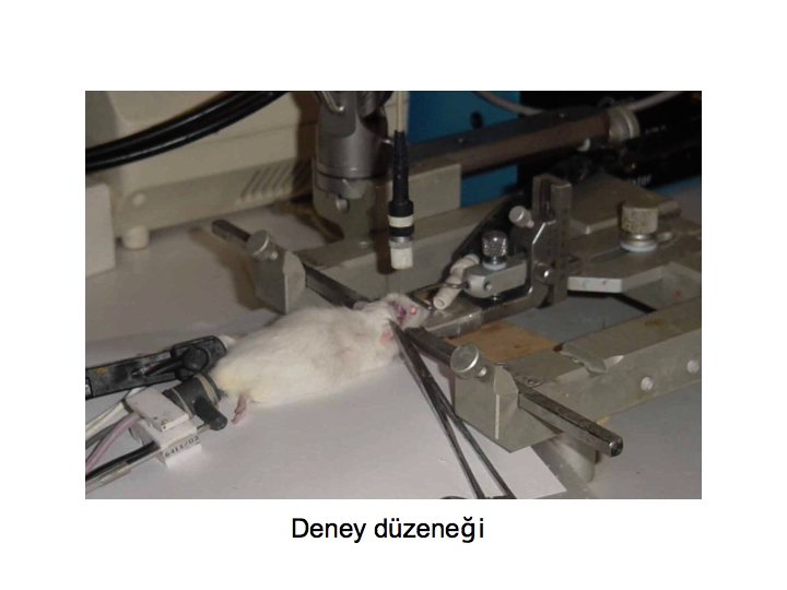 Kortikal Yayılan Depolarizasyon Dalgası Ölçüldü“Migrendeki kortikal yayılan depolarizasyon dalgasının etkilerini belirlemek için yapılan deneyde fareyi sterotoksik çerçeveye yerleştirip, anestezi altında kafatasında uyarmak istenilen yerler açılarak o bölgeye potasyum klorür, travma iğnesi veya elektriksel aktivite ile kortikal yayılan depolarizasyon dalgası oluşturarak, başka bir bölgeden de bunun yayıldığını inceledik. Elektro fizyolojik özelliklerini de kayıt altına alarak şiddetini ölçüyoruz” diyen Doç. Dr. Özdemir, belli sayıda depolarizasyon dalgasınını inceledikten sonra hayvanı belli süre yaşatıp, kan-beyin bariyerindeki hasarlanmayı tespit ettiklerini söyledi.