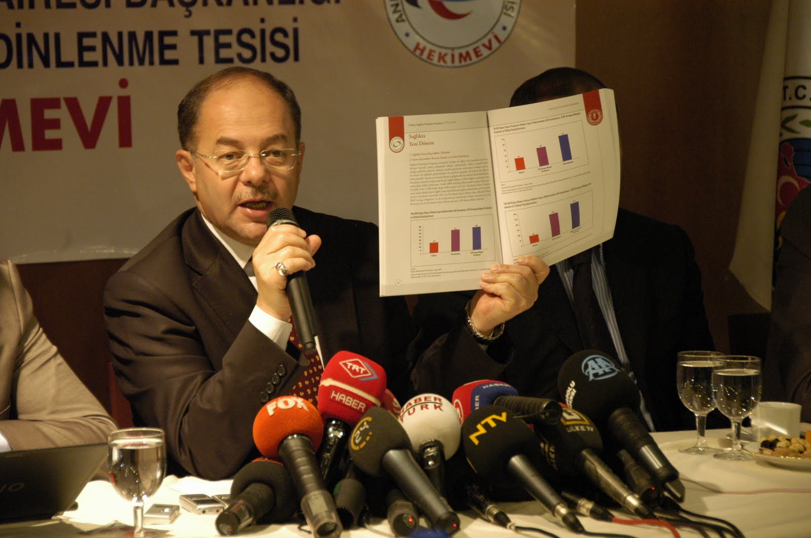 Sağlık Bakanı Recep Akdağ, Hekimevi’nde düzenlediği kahvaltılı basın toplantısında sağlık muhabirleri ile bir araya geldi. Sağlıkta dönüşüm programı çerçevesinde, ciddi ve kapsamlı değişiklikler yapıldığını söyleyen Akdağ, “Vatandaşın doğrudan yaşadığı ve karşılaştığı sağlık Türkiye İstatistik Kurumunun yaşam memnuniyeti anketlerine yansıyor. 2003 yılında sağlık hizmetlerinden memnuniyet oranı Türkiyede yüzde 39 iken 2009 yıllarına yüzde 65 civarında oldu. Dönüşüm programına çalışan ekip olarak bu oranı yüzde 70’in üzerine çıkartmaya kararlıyız”